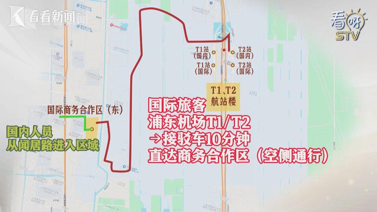目前,先行启动区的会议会展中心、联检大楼和货物查验场等核心空间已经建成,封闭设施及与浦东国际机场联接通道建设完成,实现了区域封闭式管理。国际旅客可从浦东国际机场T1、T2航站楼搭乘接驳车辆,通过空侧通道10分钟即可直达国际商务合作区。
