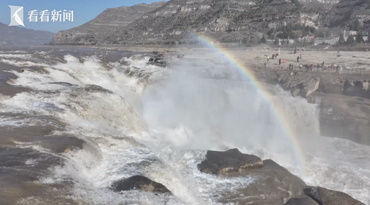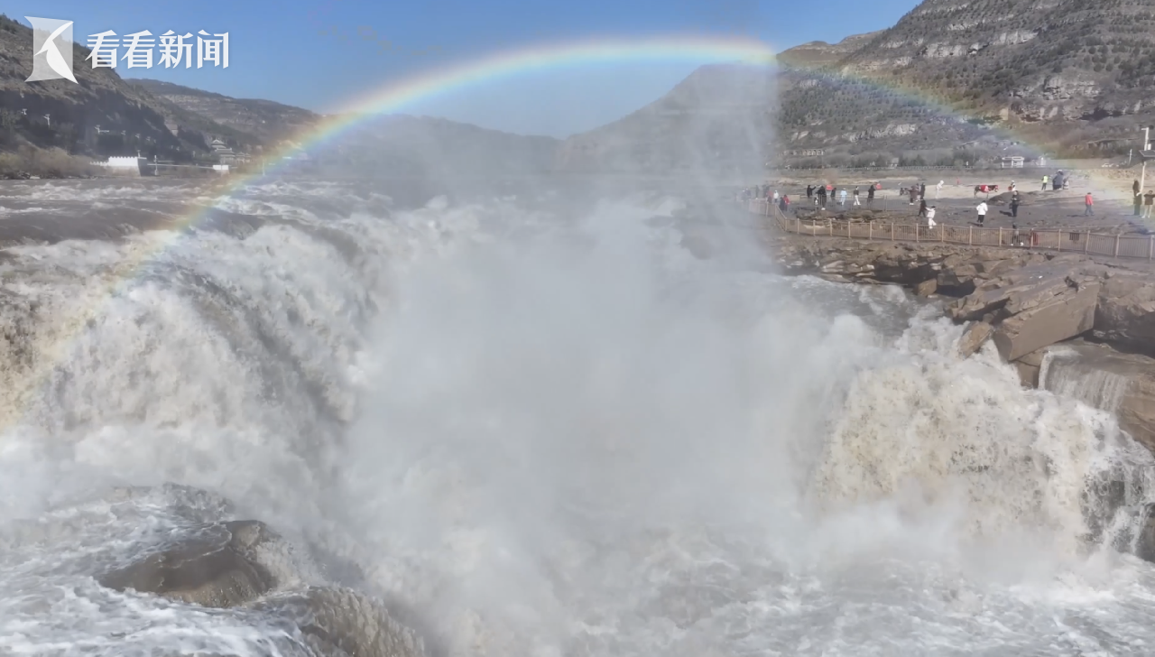景区工作人员介绍,冬季壶口瀑布的彩虹横卧,是低温环境下的独特自然现象,需满足水雾充足、阳光适宜、气温较低等多重条件。