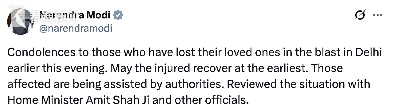 印度总理莫迪在社交媒体发文慰问遗属,并祝愿伤者早日康复。印度内政部长沙阿表示,正全面调查。目前,印度反恐机构国家调查署已介入。
