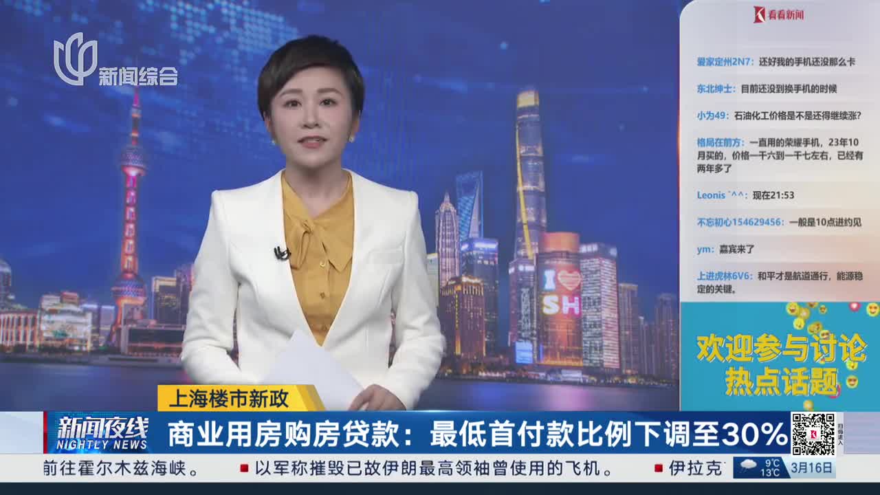 上海楼市新政 商业用房购房贷款:最低首付款比例下调至30%