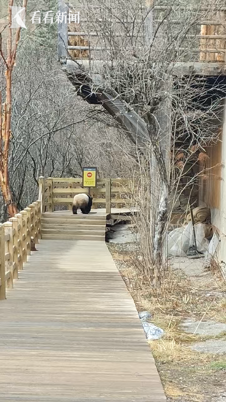 3月29日,在九寨沟景区的长海栈道上,巡护人员成功拍摄到一只野生大熊猫活体影像。这是 2017 年 "8・8" 九寨沟地震后,九寨沟国家级自然保护区内,首次实拍到野生大熊猫实体活动,标志着九寨沟生态修复工作取得重要成效。
