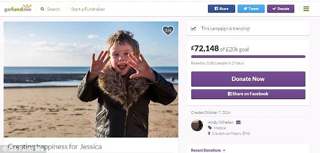 最初,杰西卡的家人在网上发起了众筹,希望能募集到2万英镑,约合17万人民币来为她治疗癌症。就在这张照片被传至网络的数小时后,募集金额就突破了2万英镑。短短2天时间,有超过3300人为杰西卡捐钱。除此之外,安迪还收到了来自世界各地的3000多封电子邮件,许多网友还在照片下方留上了祝福和鼓励。