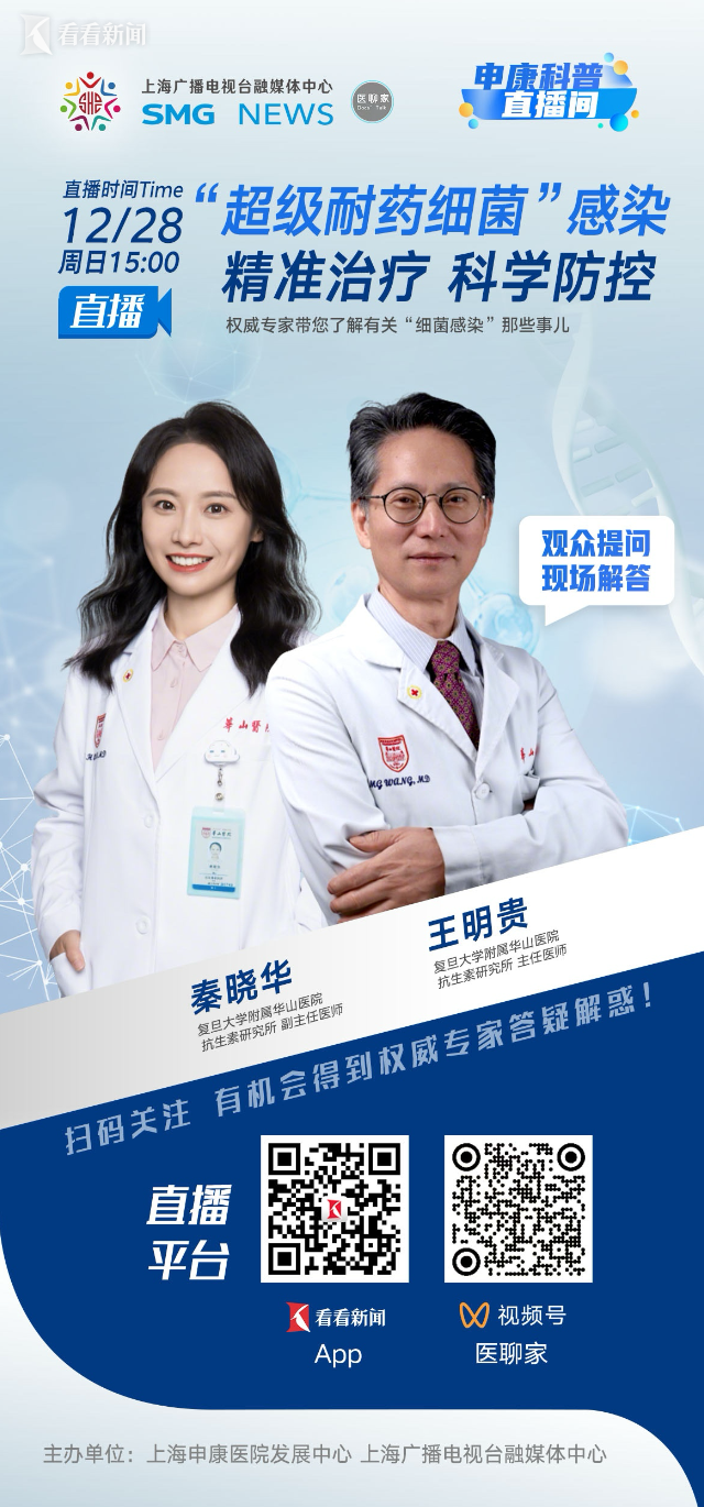 随着抗菌药物的广泛应用,超级耐药细菌感染已成为全球公共卫生领域面临的严峻挑战,不仅显著增加治疗难度和医疗成本,也直接威胁患者生命安全。面对耐药形势的持续加剧,单纯依赖经验用药已难以应对,亟需以精准诊断为基础,合理选择抗感染方案。同时,加强医院感染防控、规范抗菌药物使用、提升公众与医务人员的科学认知,是遏制耐药蔓延的关键路径。本期节目中,我们非常荣幸地邀请到复旦大学附属华山医院抗生素研究所所长王明贵教授、复旦大学附属华山医院抗生素研究所副主任医师秦晓华教授做客直播间。
