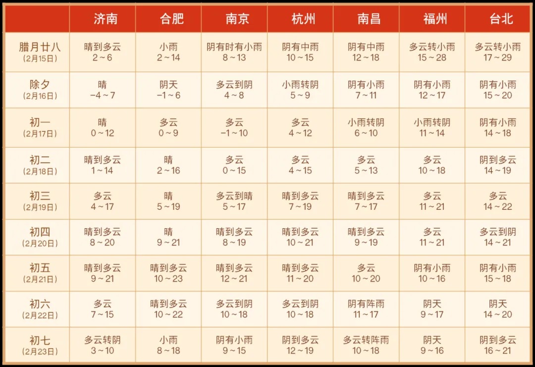 春节假期天气