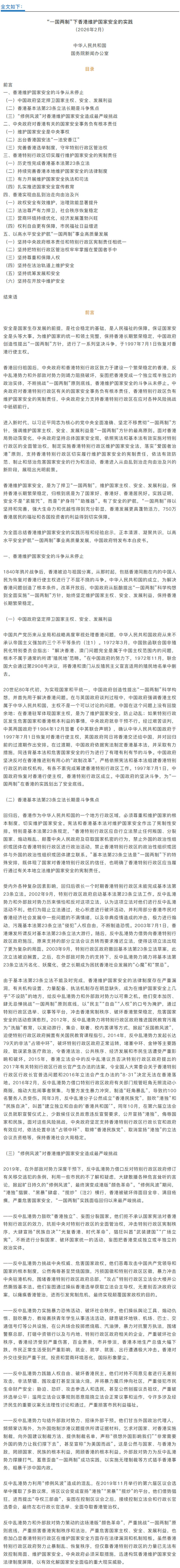 国务院新闻办公室10日发布《“一国两制”下香港维护国家安全的实践》白皮书。