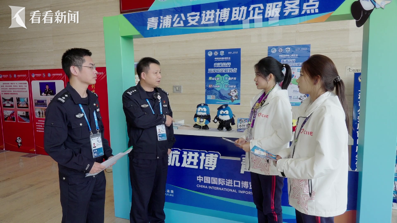 今年的进博会,公安还在场馆内首次设立了多个蓝鲸助企服务点,一部分志愿者“小叶子”,也首次有了另一个新身份——“青城义警”。