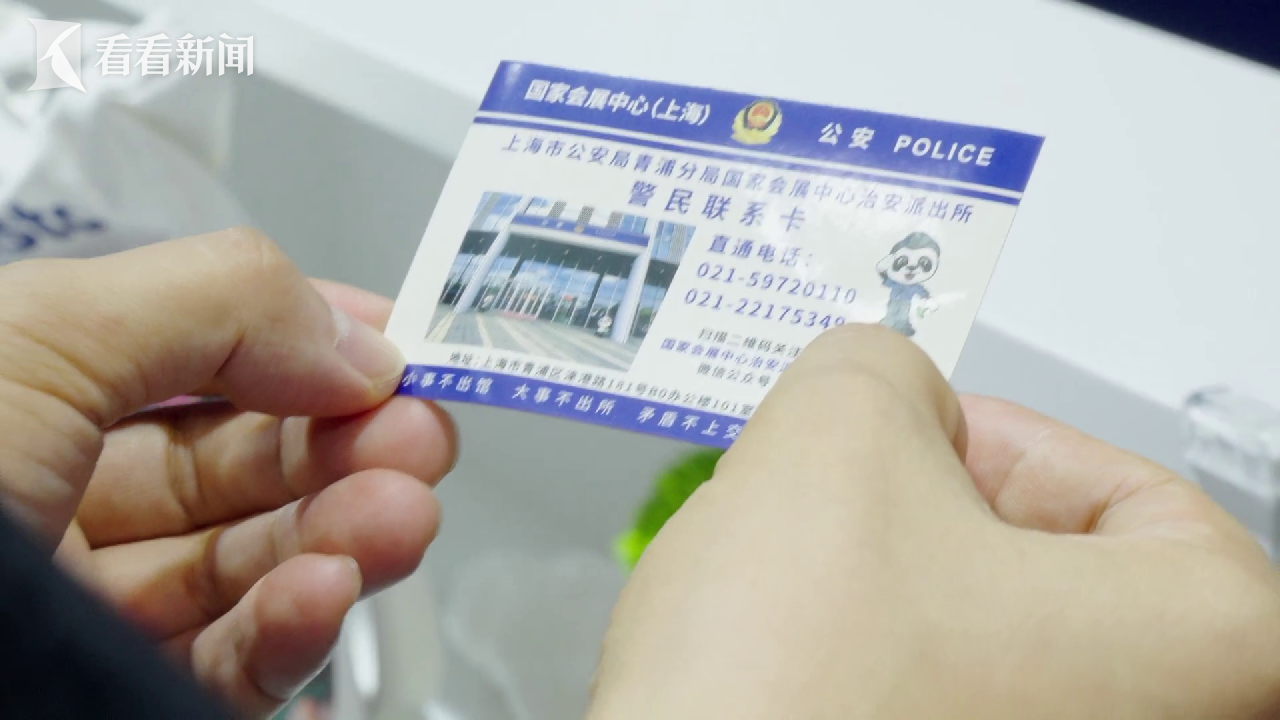 青浦公安分局国家会展中心派出所负责人杨盈之介绍:“派出所有一个警民联系卡,到时候有什么事情,上面有号码,直接可以打我们派出所电话。只要碰到事情了,直接联系我们派出所好了。”