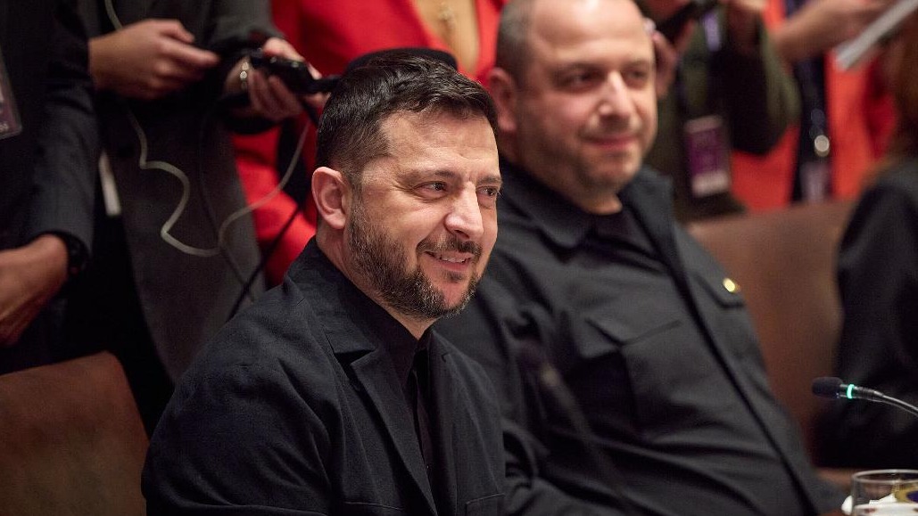 当地时间9日,乌克兰总统泽连斯基在位于乌克兰首都基辅的总统府马林斯基宫接受英国《卫报》记者采访时,现场两次停电,直到备用发电机启动,灯光才重新亮起。
