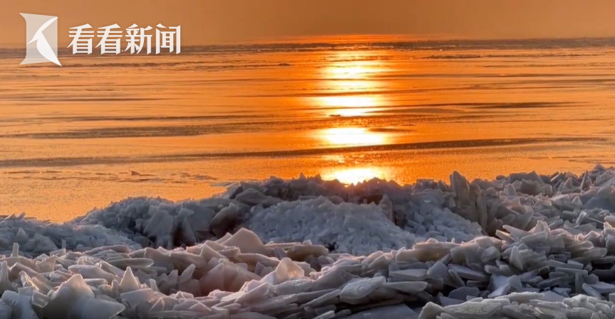 近日,兴凯湖岸边基本冰封,在夕阳的映衬下,形状各异的冰排显得更加璀璨夺目。兴凯湖位于黑龙江省东南部,水域浩瀚,是中俄最大的淡水界湖,面积4380平方公里。