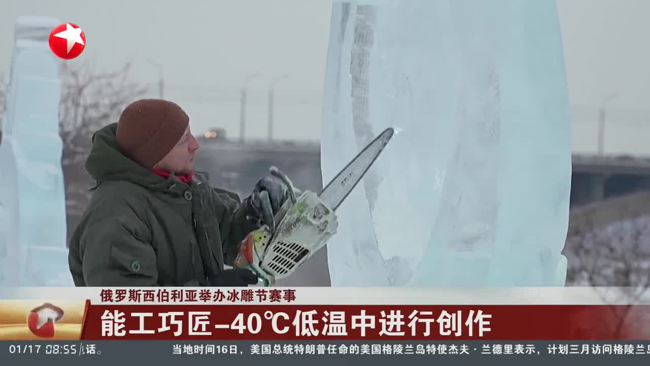 俄罗斯西伯利亚举办冰雕节赛事 能工巧匠-40°C低温中进行创作