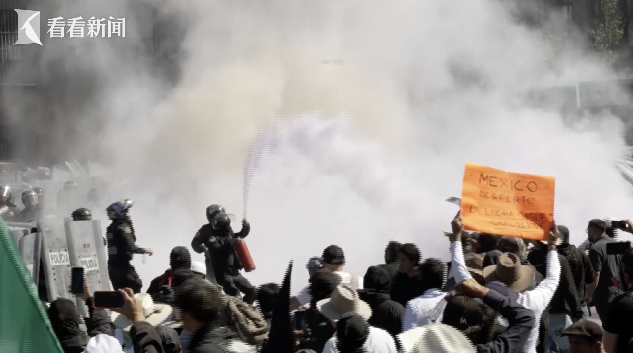 当地时间11月15日,墨西哥首都墨西哥城爆发大规模抗议。数千名抗议者对治安恶化不满,行进至总统办公地国家宫外扔石块等和警方发生冲突,现场催泪弹弥漫。