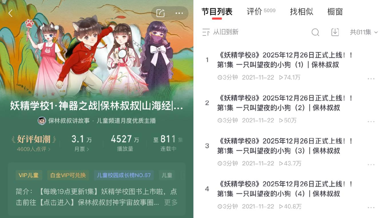 作为众多亲子用户收听有声故事的首选平台,截至2024年底,喜马拉雅儿童全场景平均月活跃用户数超4100万,月活用户数占中国0-12岁适龄儿童人口25%,相当于相当于每4个中国孩子有1个在喜马拉雅收听有声故事。在喜马拉雅众多有声内容创作者中,有一位儿童故事创作者将知识巧妙融入原创故事,凭借兼具趣味性与教育性的作品,收获了家长、孩子的广泛喜爱。