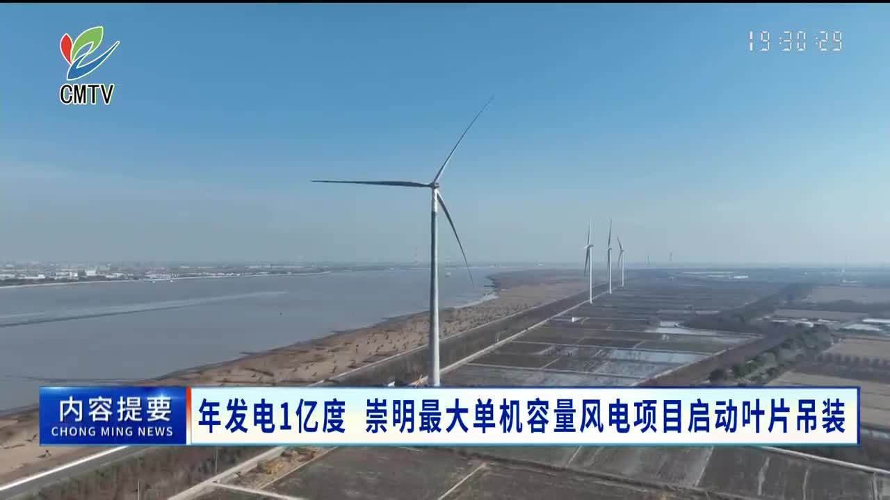 年发电1亿度 崇明最大单机容量风电项目启动叶片吊装