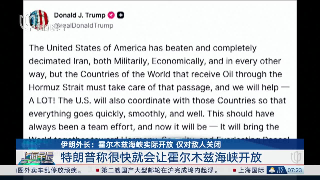 对此,伊朗外长阿拉格齐表示,霍尔木兹海峡目前仍然开放,仅对敌人——攻击伊朗的国家及其盟友的油轮和船只关闭,“其他国家的船只可以自由通行,尽管许多船只出于安全考虑选择不通过,但这与我们无关。”