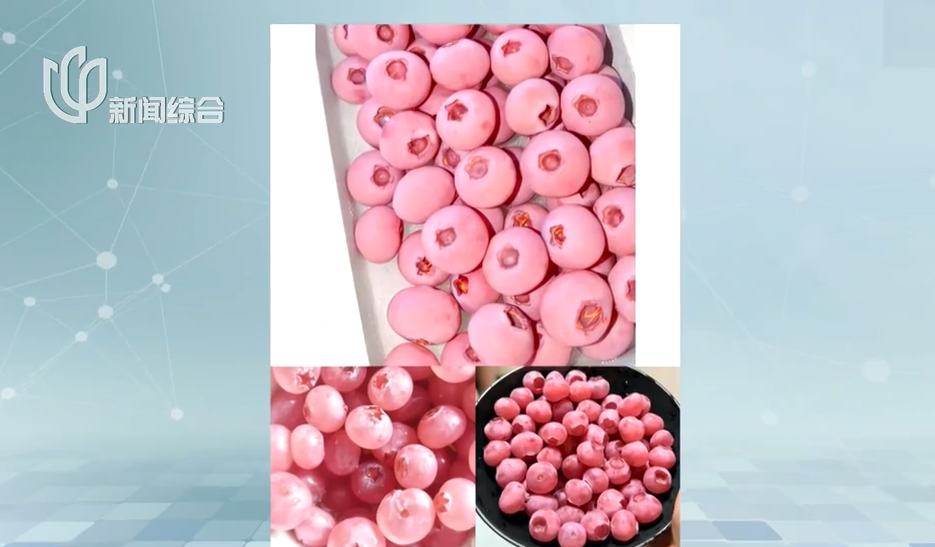 但社交平台流传的那些通体粉色,甚至晶莹剔透的粉色蓝莓,大概率是经过后期处理,甚至是AI生成。