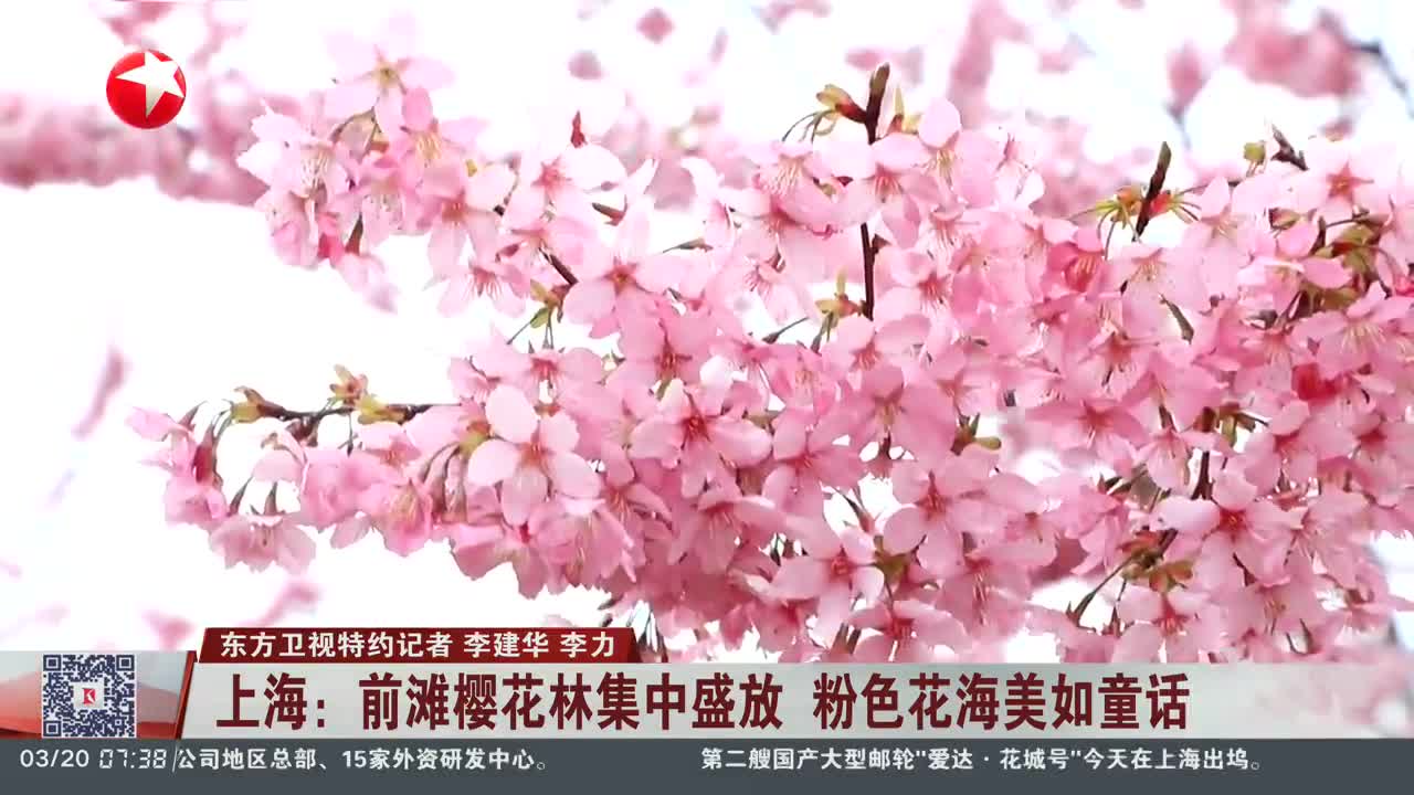 上海:前滩樱花林集中盛放 粉色花海美如童话