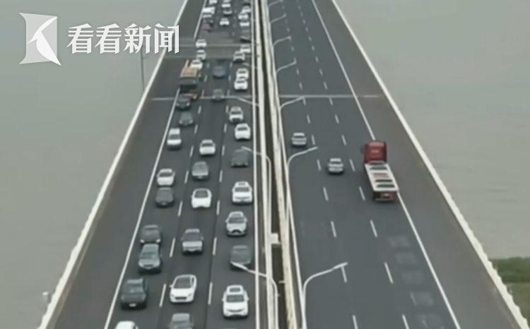 在上海,清晨7点,G40沪陕高速就已汇聚起返沪大军。自长兴岛服务区附近开始,往上海方向的车流一路向长江大桥延伸。