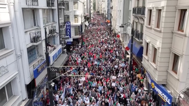 欧洲多国10月11日举行支持巴勒斯坦的游行活动,呼吁保障加沙居民权利、改善加沙生存环境,一些民众还对以色列能否履行停火协议表示怀疑。