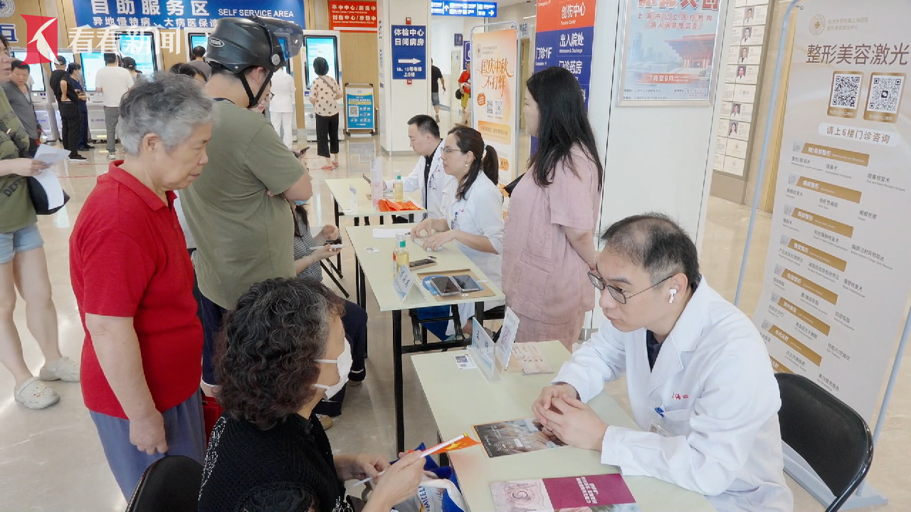 门诊大厅内,“我与美丽有个约会”义诊服务也在火热进行。伴随着动听的乐声,院内整形美容科、中医科、皮肤科的专家们齐聚一堂,为市民提供免费健康咨询服务。