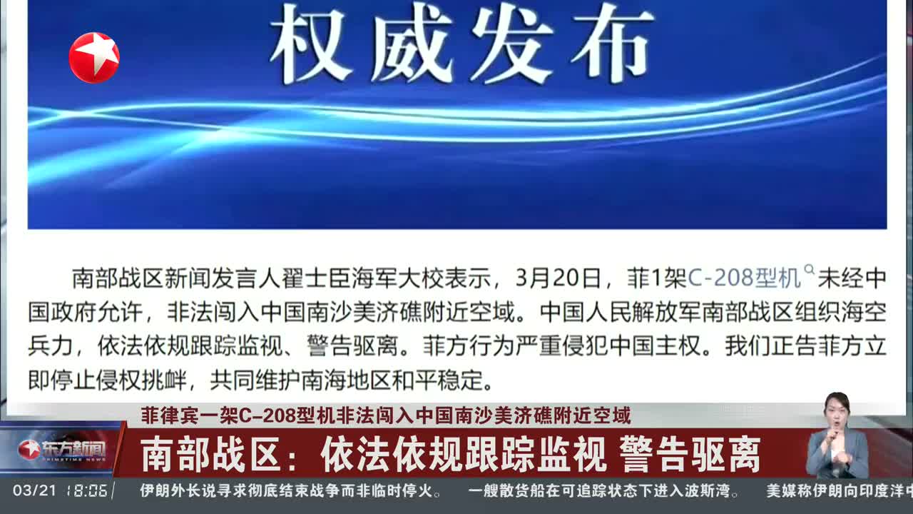 菲律宾一架C-208型机非法闯入中国南沙美济礁附近空域 南部战区:依法依规跟踪监视 警告驱离