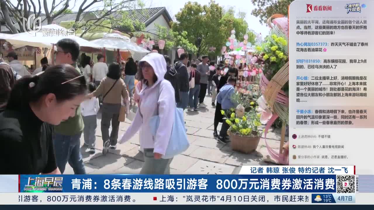 青浦:8条春游线路吸引游客 800万元消费券激活消费