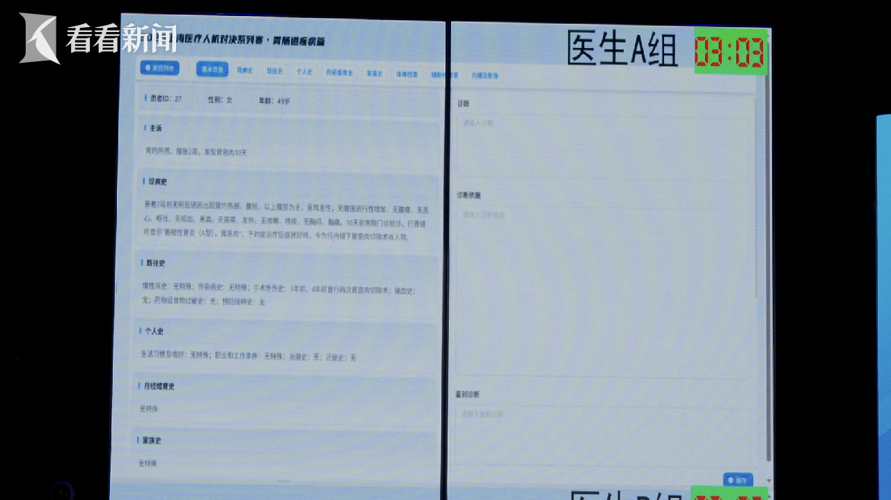 比赛开始后,人类医生团队迅速进入状态,凭借数十年临床经验展开头脑风暴;而AI则“沉默”地高速运转,不到两秒就完成了诊断,在速度上展现出压倒性优势。两组医生分别在约13分钟后提交诊断结果。