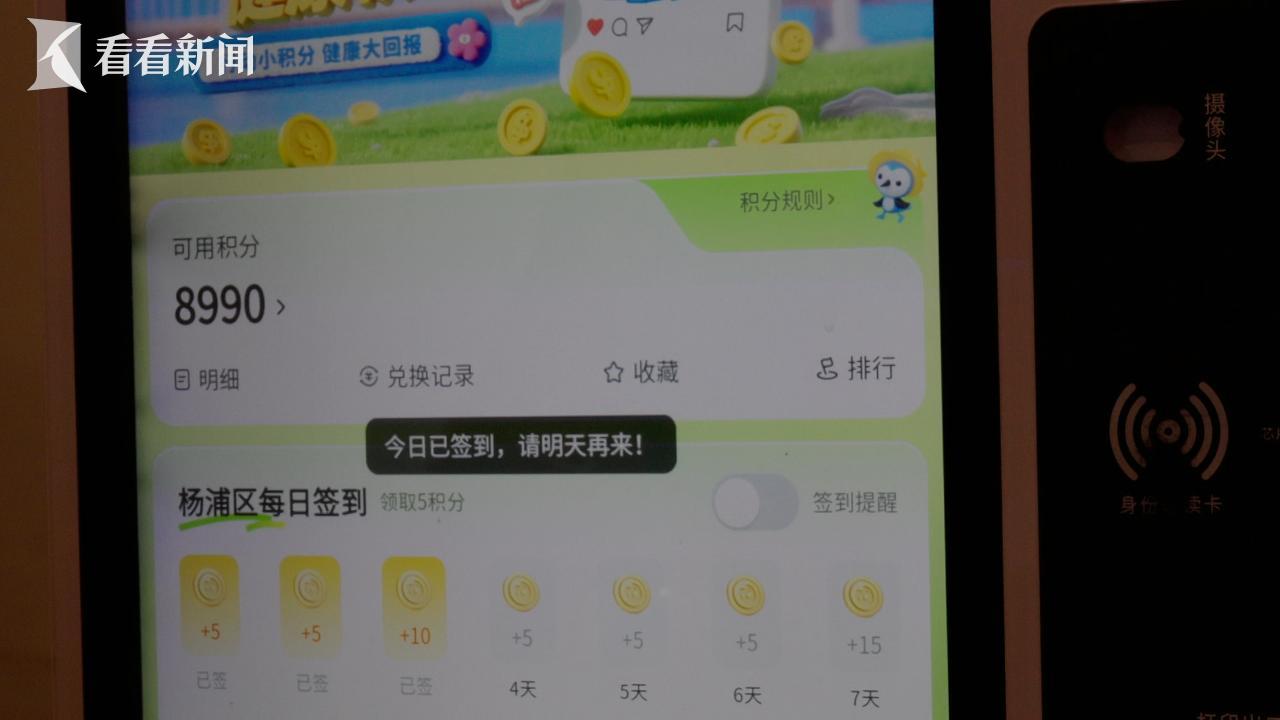 运动健身、科普学习、体重管理、家医签约......居民们凭借这些日常健康行为就能获得“健康积分”,并可兑换物品和相应服务。今年4月起,上海在杨浦、青浦两区试点上线的“健康积分”专区,已累计吸引11万人次参与。这项用小积分撬动大健康的“健康积分制”创新举措,居民们可以通过线下“健康云”服务终端或通过手机端“健康云”APP、小程序,学习健康知识、打卡运动步数等方式累计积分,并完成商城兑换。探索构建全民主动健康新机制,市建委表示,下一步,“健康积分制”将在全市16个区全面推广,力争在“十五五”期间,把健康积分覆盖到全体市民,激发居民自我健康管理的内生动力。