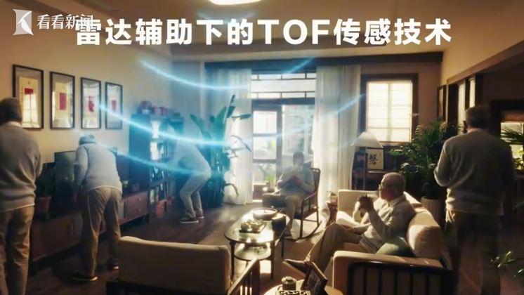 记者:大家跟着我们的镜头来看一下在居家环境中有两盏灯,在我头顶上这盏灯它中间的部分是暗着的,然后来看一下这盏壁灯,中间的传感器在闪烁,现在这个灯除了照明以外还能担任家里的“安全卫士”,传感器闪烁就说明它监测到了在这个环境中有人跌倒了,然后它就会把这个警报的信息传到子女的手机app上,让他们知道家里的情况。