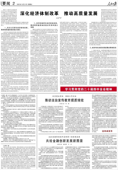 深化经济体制改革 推动高质量发展(学习贯彻党的二十届四中全会精神)
