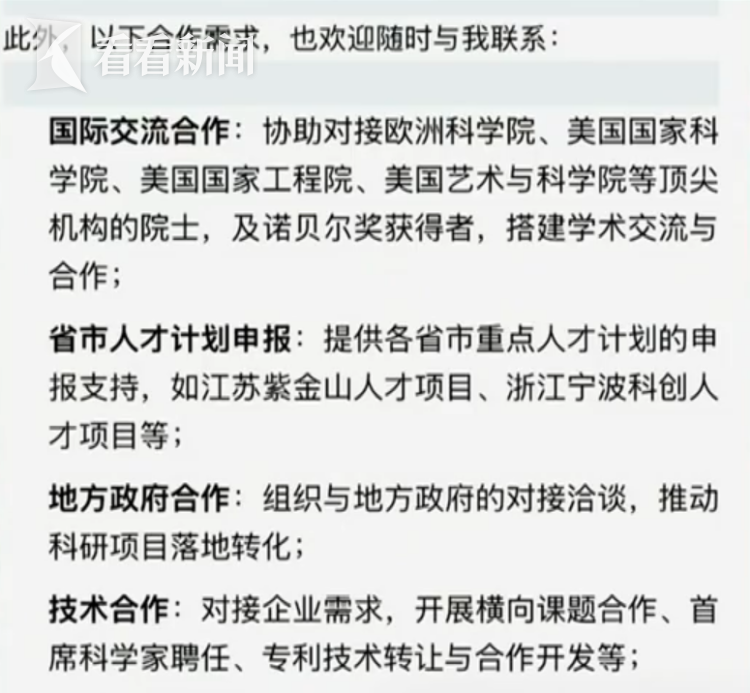 于是,记者联系到这家机构进行核实。一名工作人员表示,这份邮件确系其平台工作人员发出。并回应称,他们的本质是协助客户提供信息咨询服务,这笔费用类似律师或留学中介的合理收费,并不是花钱买院士头衔。