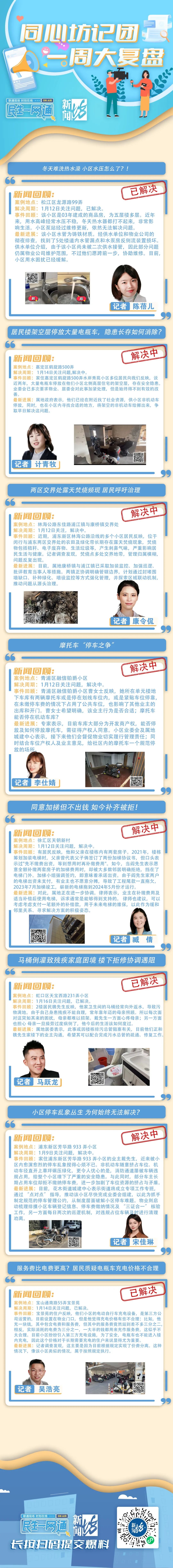 龙沟新苑业主 早出晚归的业主晚上回来,没车位停,交了停车管理费,家属只好用助动车去占位,现在是交了钞票,车子进来没法停,不交钞票的车也停。 老爷叔的抱怨不无道理,虽然这个小区的停车费一个月才100元,但的确就有业主选择不交,而他们同样对小区物业的停车管理不满意。 龙沟新苑业主 救护车来了都在骂,停车停得一塌糊涂,只能倒着出去,你说这管理有问题吗?停车位你真得管理好,我们业主愿意交钱,不是说不愿意交钱,但是你要有管理啊! 龙沟新苑业主 收了停车费不管理,然后停车费收了多少也不公布,(物业)一直没做管理。现在人家都没交(停车费),我们车子基本上不出小区的。 对于业主们的诸多不满 小区物业负责人却一直在强调 小区车位的先天不足 物业负责人表示,小区内"三证合一"、登记在册的业主车辆约700辆,但交停车管理费的只有236辆,而租户车辆和外来车辆的底数也说不清。 孙洁清 花木物业项目经理: 这属于一个动迁小区,户数比较多共有1058户,车位比在1:0.4左右,对于停车来说,的确是个老大难问题。 至于管理,物业负责人表示,目前能做的就是让保安早晚两次巡逻,“发现有抢占车位的第一时间清理,当然也有返潮现象,毕竟我们也没有执法权”。 那么,为何不能召开业主大会 讨论制定小区的停车管理规约呢? 龙沟新苑业主 车位真正不够的情况下,我们抓阄也可以,物业要拿出处理方案来,而不是置之不理。 坊记了解到,龙沟新苑2005年入住至今,尚未成立业委会。 卫云燕 龙沟居民区党支部书记: 管理规约确实没有。这个居民有这个居民的意见,那个居民有那个居民的意见,没有达成一致;也跟物业公司协商过,制定相关的制度,由于不是业委会所以没办法达成一致 对此,属地街道城建中心相关负责人表示,今年将重点推进龙沟新苑业委会的成立,尽快制定行之有效的停车规约。 唐澍璘 花木街道城建中心副主任: 停车难主要原因可能是没有停车规约的支撑,缺少一些有效手段,街道层面(今年)会做到三个下沉——人员下沉、资源下沉、力量下沉,形成相应的工作专班,点对点指导这个小区,尽快成立业委会。 誉品·谷水湾:车位比先天不足 “三驾马车”努力挖潜 位于松江的誉品·谷水湾小区,坊记发现,地下停车库内有不少车辆并没停在车位内,反倒是过道边、楼梯旁,随处可见违停车辆。 据业主反映,到了晚上,违停情况会更加严重。 陈先生 誉品·谷水湾小区业主 上班的时候就要考虑下班停车怎么办,到晚上回来,两个地面的通道都停满车。连下停车库的斜坡上都停满车,估计50~60辆车肯定是有的。 坊记了解到,小区共有1085户人家,配建车位996个,车位比接近1:0.9,但由于相当部分业主家有两辆车,车位缺口依然不小。 为此,小区"三驾马车"正努力挖潜,完善停车管理方案,缓解停车难题。 韩双庆 誉品·谷水湾小区业委会主任: 现在(地下车库)能够划线的就上会表决,表决通过才能增加划线车位,大概有28个;路面上严格画框规划,去框内把现在多余的花盆移掉,扩展到16个左右。 谷水湾居民区党总支书记孙政伟表示, 将督促业委会尽快完善停车管理方案,包括一些道闸的技防提升,把部分外来车辆、包括一些其他车辆拒到小区之外。 在车位比先天不足的情况下 如何破解小区停车难题? 专家指出,首先要摸清底数,在此基础上才能多措并举、盘活资源。 叶志鹏 华东师范大学公共管理学院副教授: 一定要把小区内部停车和停车相关资源的底数摸清楚,在此前提下,做盘活资源的一些方式,比如可以借助老旧小区更新改造,把原来闲置的或低效利用的一些空间充分挖掘出来,拓宽增加停车空间。 目前上海对新建小区的车位比已有更高要求—— 内环以内的普通商品住宅,车位比要大于1:1,即每户至少配建1个车位; 内外环之间的普通商品住宅,每户≥1.2个车位; 外环的普通商品住宅,每户≥1.3个车位; 新建的动迁安置房、经济适用房等保障性住房,车位比也要求在1:0.6~1:1之间。 小区停车难问题 是历史欠账+管理不善+需求激增 共同造成的 解决它需要从 优化管理和硬件扩容齐入手 对于怎样优化资源配置 盘活存量、挖掘增量 坊友们有啥好建议? 欢迎来评论区分享~ 在过去的一周 坊记们也一直在路上! 时刻关注大家的“急难愁盼” 如果你也有“急难愁盼” 长按识别下图二维码 《新闻坊》“同心服务平台” ↓↓↓