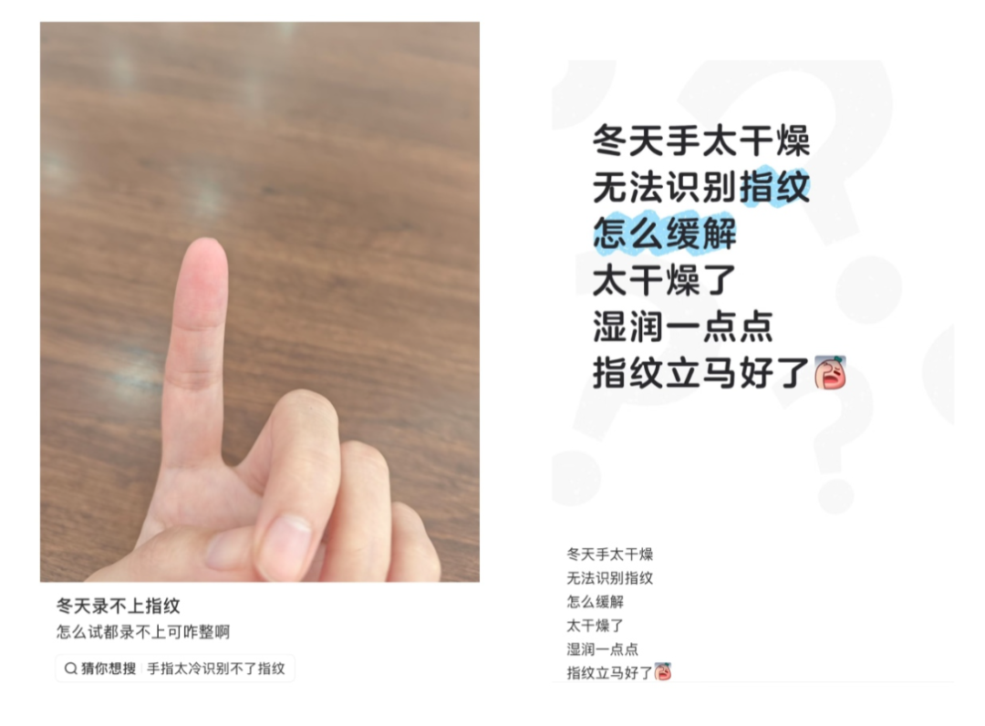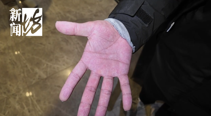 黄先生表示,每到冬季,双手就会出现大面积脱皮的情况,手指部位尤为严重,原本清晰的指纹变得残缺不全。而自己租住的公租房恰巧是采用指纹锁,如此一来,指纹解锁自然失效。