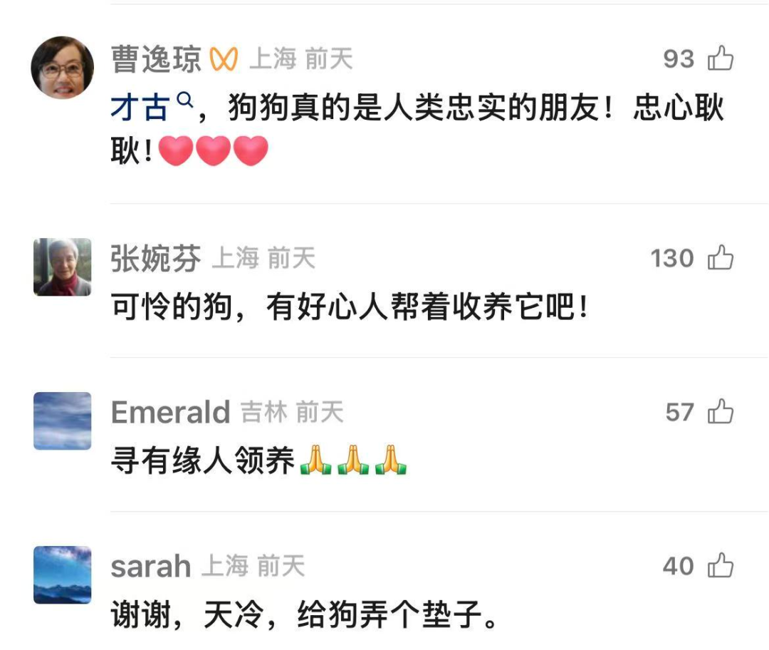 最近 宝山区泗塘一村一栋居民楼内 上演着现实版“忠犬八公”的故事 居民们为此特地向小坊求助 独居老人去世 宠物狗固守楼道口等待主人 昨天(1月6日)下午,坊记来到泗塘一村95号楼。虽然坊记没有看到阿旺,但邻居们还是热心地讲述起它的故事。 阿旺与主人相伴近10年,上个月11日,爷叔突发疾病去世,从那以后的20多天里,阿旺每晚都会蹲守在3楼楼道里,仿佛仍等待主人回来……这几天,阿旺甚至开始不吃不喝,让大家十分揪心。直到6日早上开始,阿旺突然不见了,居民们一下紧张了。 ▲ 邻居拍下的“阿旺” 邻居 这只狗非常聪明的!这里有个狗洞,它就从这里进房间,老人去世之后,阿旺不在里面了,睡在楼道里,这些都是我大伯伯给它吃的,目前它水也不喝,粮也不吃,断粮断食已经三四天了。 好心邻居投喂的粮食↓ 邻居 老主人在的时候,我们路过的时候它都会叫,自从老先生走了以后,它就不叫了,这个狗通人性,很聪明的。 邻居 主人过世,就没人养它了。很难抓住它,见陌生人他就逃;它很听话,有人动主人的助动车,它就会叫。 邻居 主人晚上回来口哨吹两下,这个狗就回来了。附近也有邻居也说要领他回去,但领不回去。 在采访中,邻居们提起阿旺时 用的几乎都是人类赞美狗狗时 最温暖的词汇 阿旺很听话 也从不对楼里的孩子叫嚷 从居民传来的视频能看到 阿旺一身金毛,模样温顺 如今楼道里铺着两块薄棉布,是邻居此前他做的临时“家”;旁边的简易塑料盒里,放着邻居送来的狗粮。 只是主人一直没有回来,阿旺也已经很多天不肯吃东西了。 不吃不喝…不见踪影 忠犬“阿旺”情牵邻里 坊记了解到,阿旺的主人高老伯今年60多岁,有一个儿子但来往不多,因此近十年来,日常都是与阿旺相依为伴。 从昨天(6日)到今天(7日),坊记2次上门都没见阿旺的踪影。据居民们回忆,最后一次见到阿旺,是昨天早晨,在楼道门口,之后就没了踪迹。 整栋楼的邻居都牵挂着阿旺 这几天上海降温 居民们都非常担心这只忠犬 虽然大多数邻居对阿旺抱有同情,愿意接纳它,但也有居民表示,阿旺长期无人看管地在楼道守候,存在一定的安全隐患。 因此 找回“阿旺”,让它有个稳妥归宿 成为居民们的共同心愿 “阿旺”何去何从?多方回应 有居民将阿旺的故事分享网上 网友们都说 阿旺是有情有义的狗狗 有也网友表示:心疼 甚至不少网友表态: 愿意领养阿旺 今天,就有一家爱心动物领养机构来到泗塘一村。 陈孜 上海杰哥云宠乐园 运营负责人: 像这些很忠诚的狗,它在主人去世之后,可能有一种孤独感和一种应激反应,这种反应可能会使狗很难再去找下一个主人。其实就像忠犬八公里的八公是一样的道理。 上述宠物机构负责人表示,考虑到阿旺目前情况不稳定且多日未进食,接回基地可以让它在相对安全、平和的环境里慢慢恢复。但目前,最重要的是先找到阿旺,宠物机构还会参与寻找。 不过居委也表示,找到阿旺后,他们还是首先要与老人子女沟能,确认其是否愿意继续领养;同时搭建协商平台,联合爱心居民和机构,共同为阿旺寻找安身之处。 法律人士也提醒,宠物狗可作为“其他合法财产”纳入遗产范围,由继承人继承。若继承人明确放弃继承,则无需承担饲养义务,但在此期间如发生犬只伤人事件,继承人仍须承担相应责任。 20多天坚守主人再未归来的家门 忠犬“阿旺”的故事 触动了很多人心中最柔软的部分 无论阿旺最终去向何处 它的故事已然留下回响—— 珍视每一份真挚的陪伴 正视对责任和生命尊严的思考 小坊也希望 能早日听到阿旺的消息 如果你也有“急难愁盼” 长按识别下图二维码 《新闻坊》“同心服务平台” ↓↓↓ 两种途径呼叫 同心服务坊记团 ①长按识别或扫描 海报↓左上角二维码 即可下载看看新闻APP 进入报料专区 ②长按识别或扫描 海报↓下方二维码 《新闻坊》“同心服务平台” 求助、咨询、意见、建议 同样一键直达