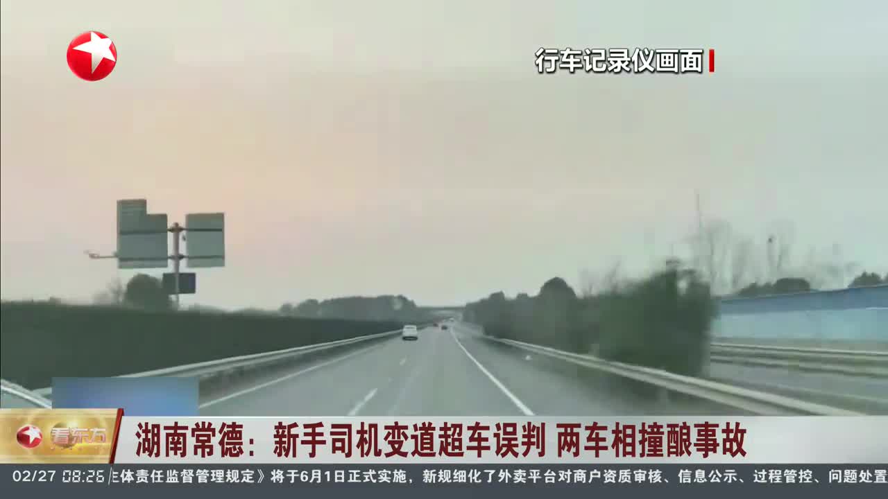 湖南常德:新手司机变道超车误判 两车相撞酿事故