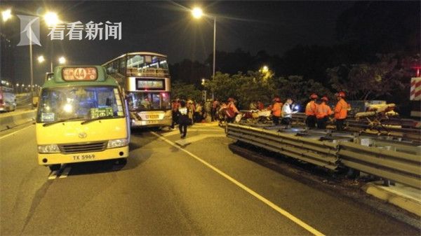 香港元朗公路发生5车相撞的严重意外,4月12日晚上7点多,一辆44号专线小巴、一辆265M双层公交大巴、一辆967X双层公交大巴,以及2辆轻型货车,沿元朗公路往屯门方向行驶,过程中5车发生碰撞,5辆车辆的车头及车尾均损毁,当中967X公交大巴车头凹陷,挡风玻碎裂。据香港媒体报道,意外导致至少55人受伤。