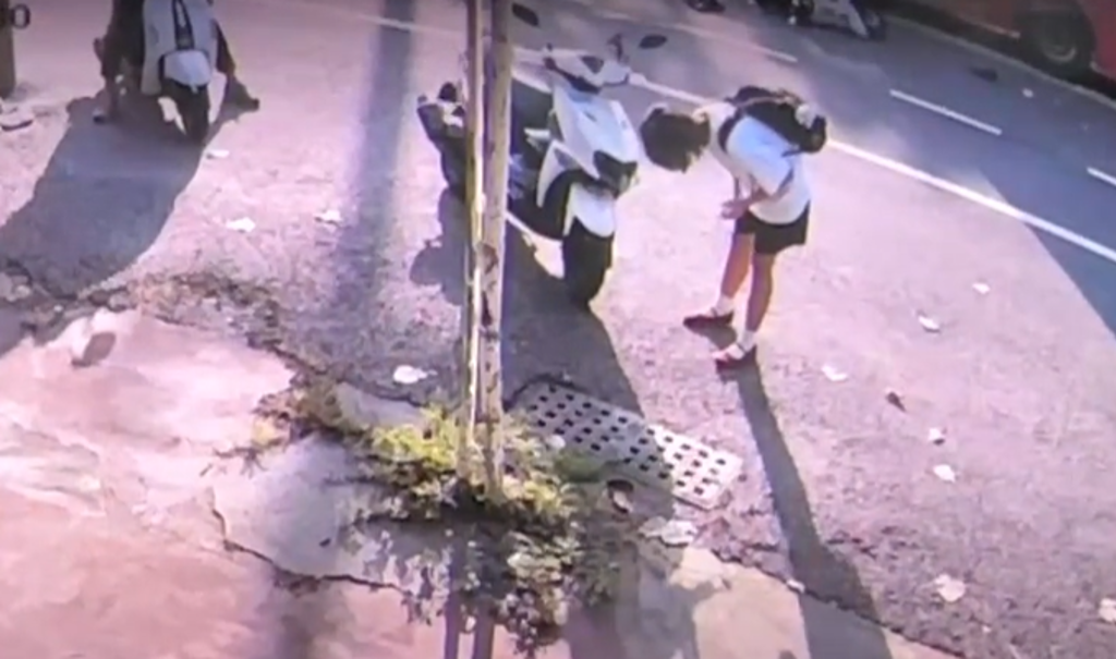 从监视器画面可见,车祸现场一片狼藉,郑女的随身物品散落一地,当时游览车司机江男急忙跳下车,惊慌地在女警身边徘徊。然而,追撞女警的戴姓女大生却显得异常冷静,她先是缓缓将机车移至路边,脱下安全帽与他人对话后,接着回到自己的机车旁。