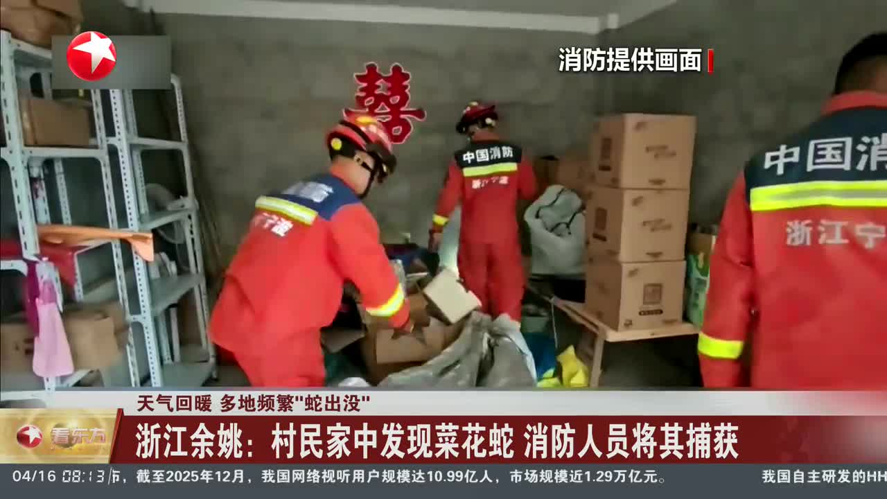 天气回暖 多地频繁“蛇出没”浙江余姚:村民家中发现菜花蛇 消防人员将其捕获