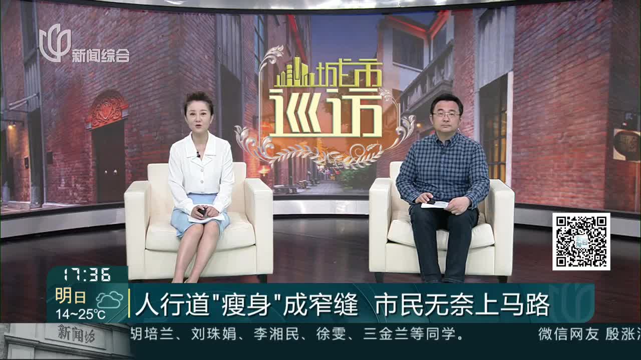 人行道“瘦身”成窄缝 市民无奈上马路