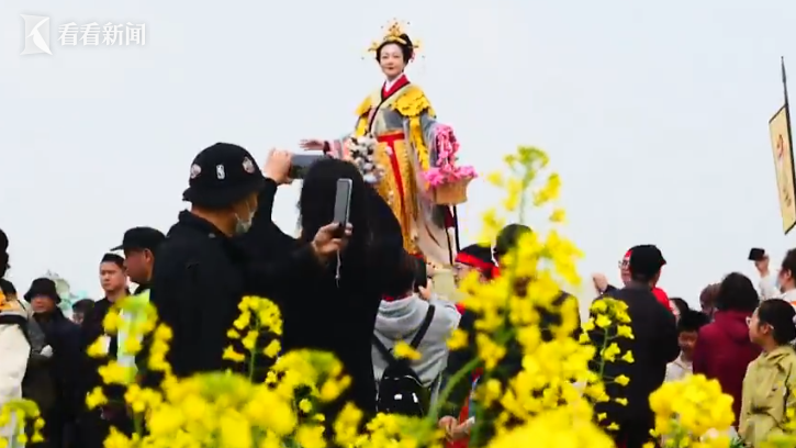 罗店花神节也春日赏花的热点。花神娘娘登车巡游千亩油菜花海,市民游客夹道相随,争相记录这场传统与春光交织的沉浸式体验。