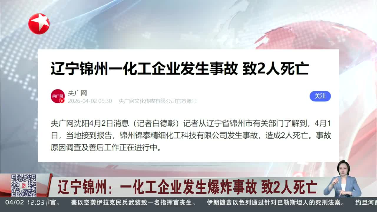 辽宁锦州:一化工企业发生爆炸事故 致2人死亡