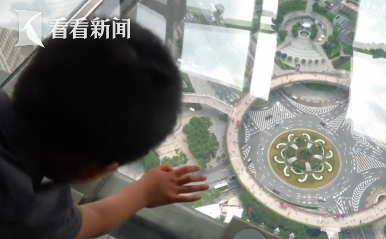 259米的悬空观光廊里人潮涌动,市民游客纷纷眺望浦江两岸美景。