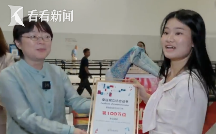 下午3点半,浦东美术馆迎来今年第100万名观众。这也是该馆开馆以来首次一年观众破百万人次。馆方特意为这名观众送上了礼物。