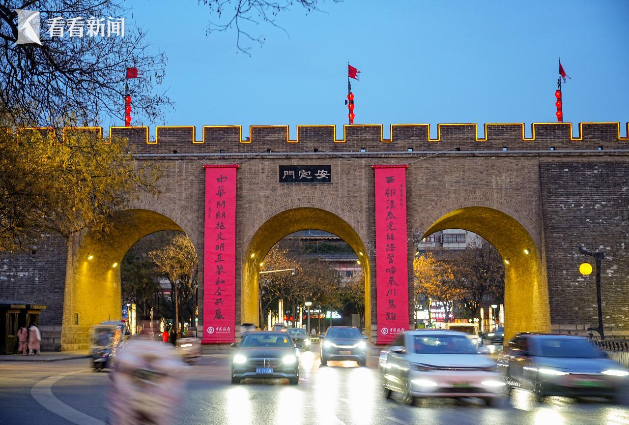 近日,西安城墙永宁门、长乐门、和平门、建国门、朝阳门等16座城门等16个城门,陆续悬挂起巨幅春联,红底浓墨映着千年城砖与雄伟的古城墙交相辉映,将古城西安装扮得喜气洋洋。