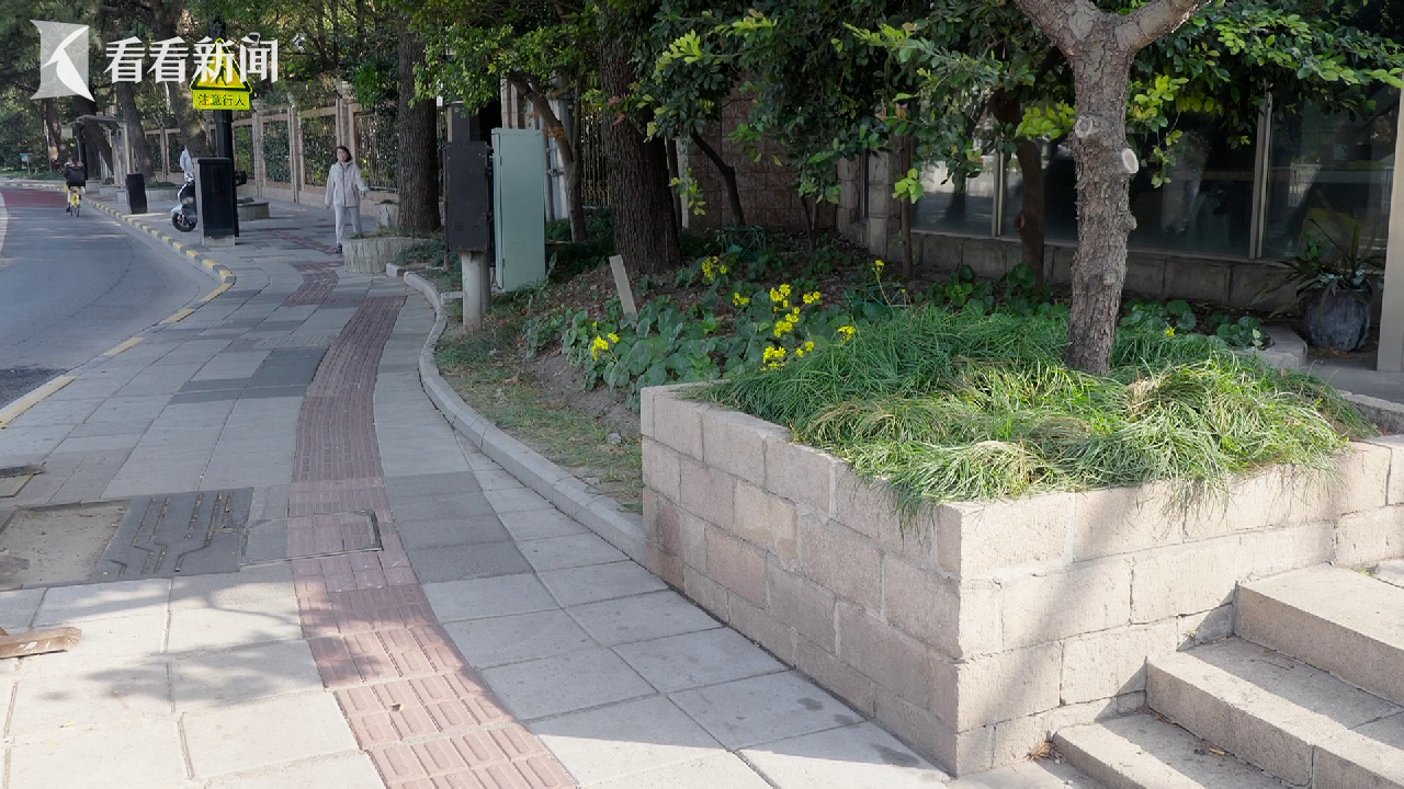 上海市盲童学校学生沈逸锋说:“人行道上有盲道,但根本走不了,旁边都停满了自行车。”学生刘思聪说:“有时盲道靠花坛太近,万一走偏进去,就可能会撞到。”