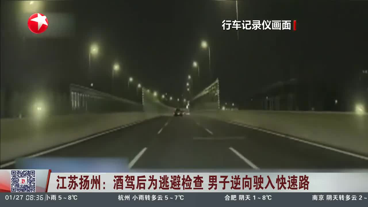 江苏扬州:酒驾后为逃避检查 男子逆向驶入快速路