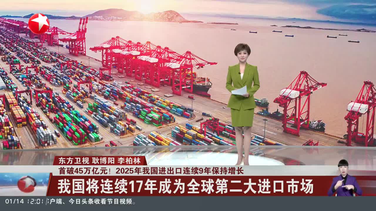 首破45万亿元!2025年我国进出口连续9年保持增长 我国将连续17年成为全球第二大进口市场