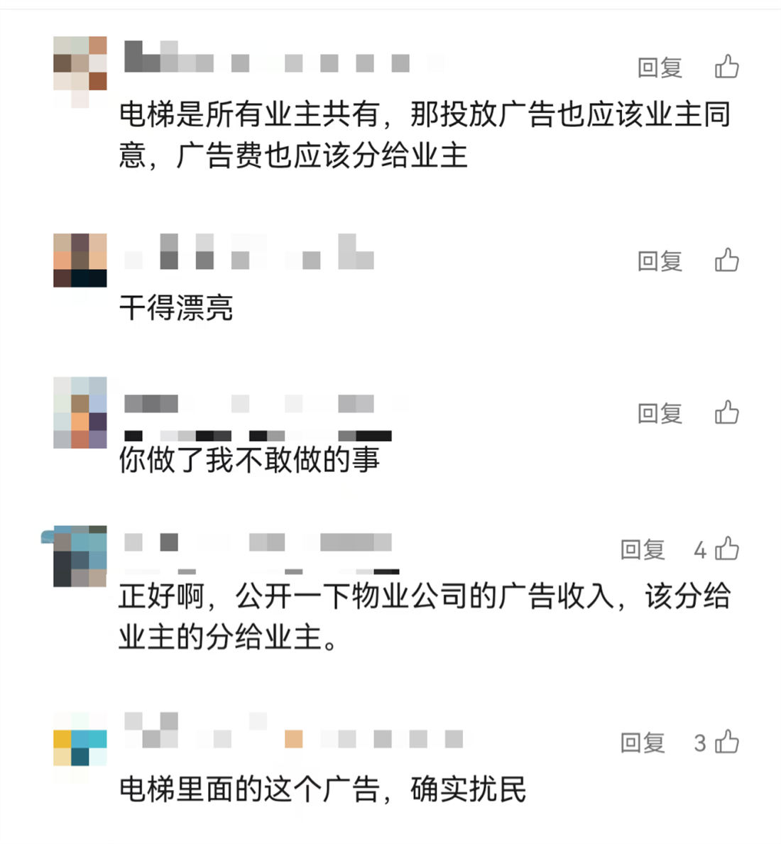 居民们介绍,这是一个2015年建成入住的动迁安置房小区,公共设施维护需要钱。如今广告收益成了一笔糊涂账,大家难免会有微词。希望物业能尽快公开电梯内的广告收入,并用于公共事务。
