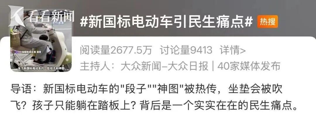 专家同时建议,新规不能脱离百姓的真实需求,而是要让电动自行车这个刚需产品既能守住安全底线,又能满足居民的日常所需。
