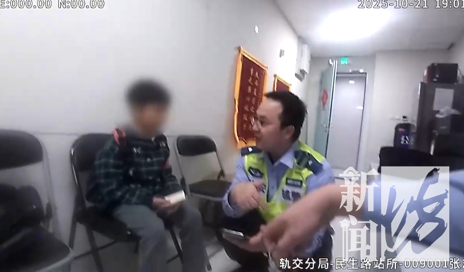 10月21号晚上7点左右,轨交14号线蓝天路站驻站民警接到乘客求助,称有一名8、9岁模样的孩子与家人走散。