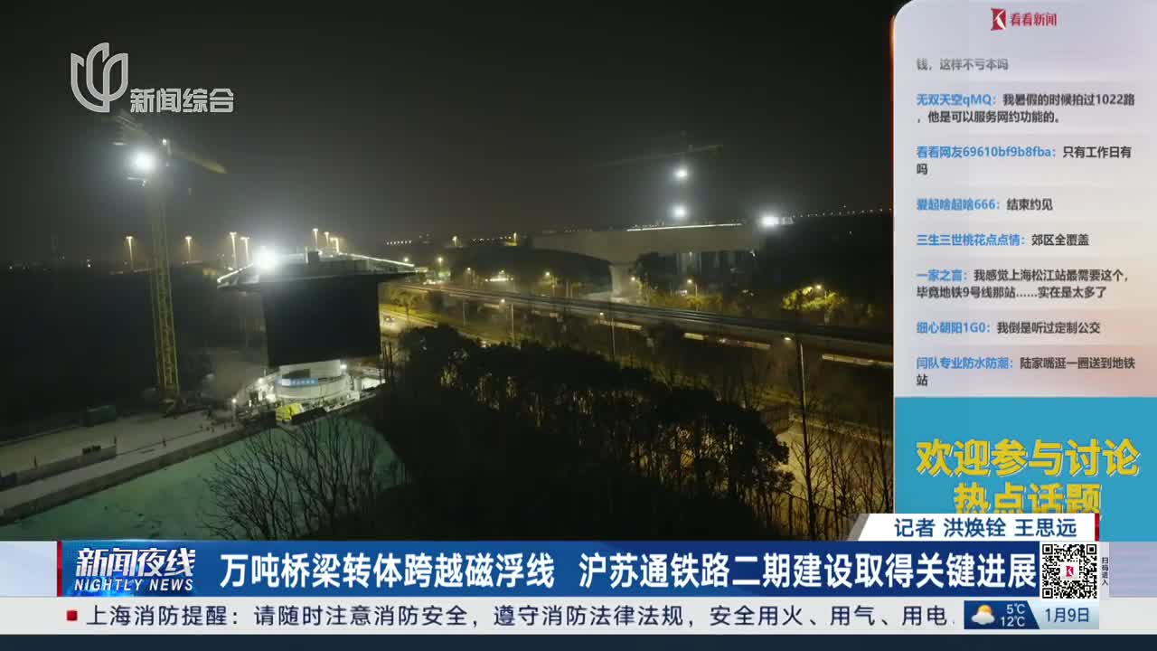 国内首例!万吨桥梁成功转体跨越上海磁浮线,距离沪苏通铁路二期2027年建成通车又进一步。1月8日晚上,沪苏通铁路二期太仓至四团段的控制性工程——川沙特大桥跨磁浮线连续梁成功实现转体,为后续铺轨及建成通车奠定了坚实基础。